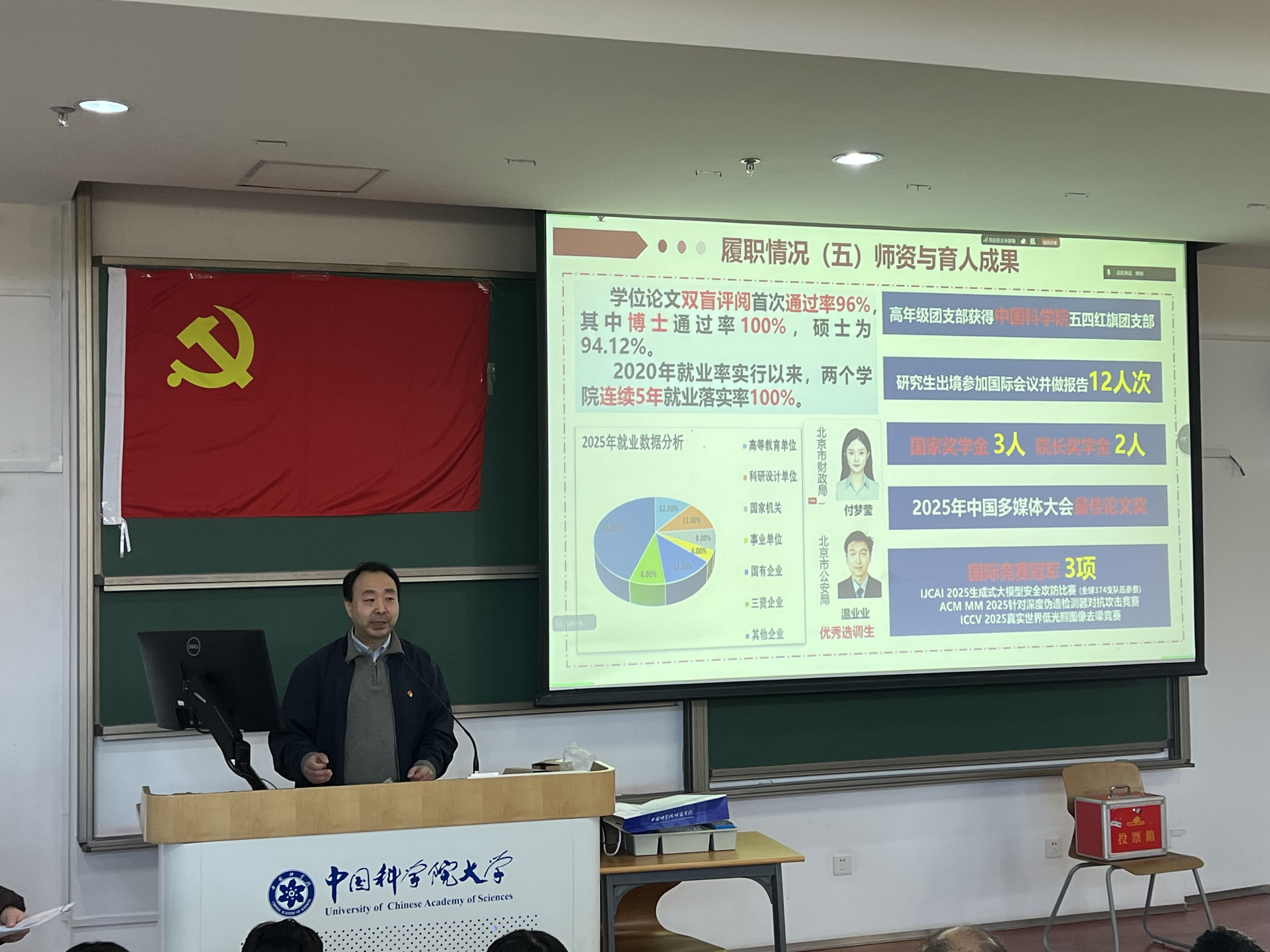 2026年1月20日,电子集成电路学院党委在雁栖湖校区教二召开全体党员大会,选举产生出席中国共产党中国科学院大学第十一次党员代表大会代表。学院党委书记谢勇同志主持会议,全体师生党员382人参加会议。
